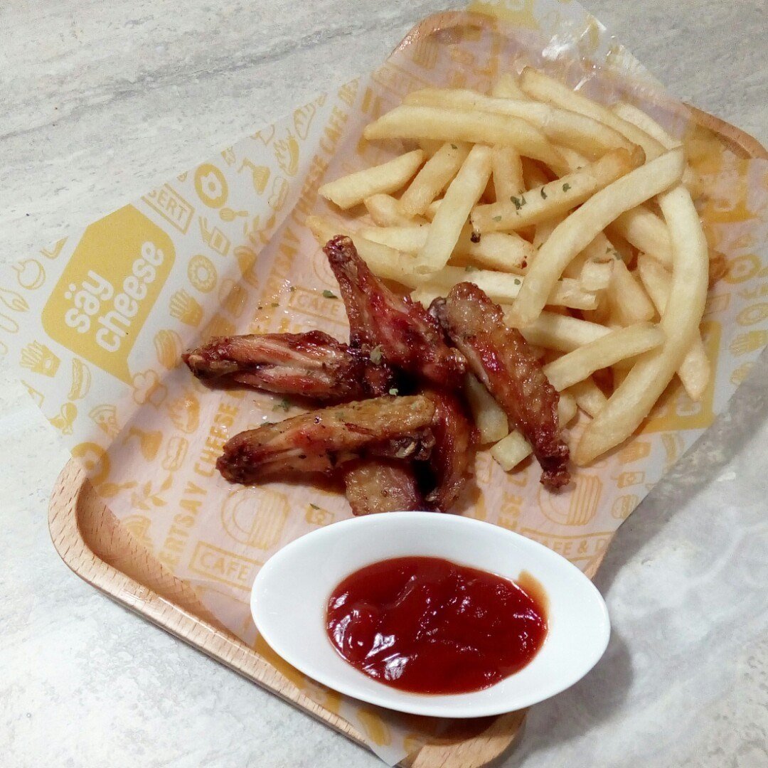 The chicken wings and fries were a good snack to share.